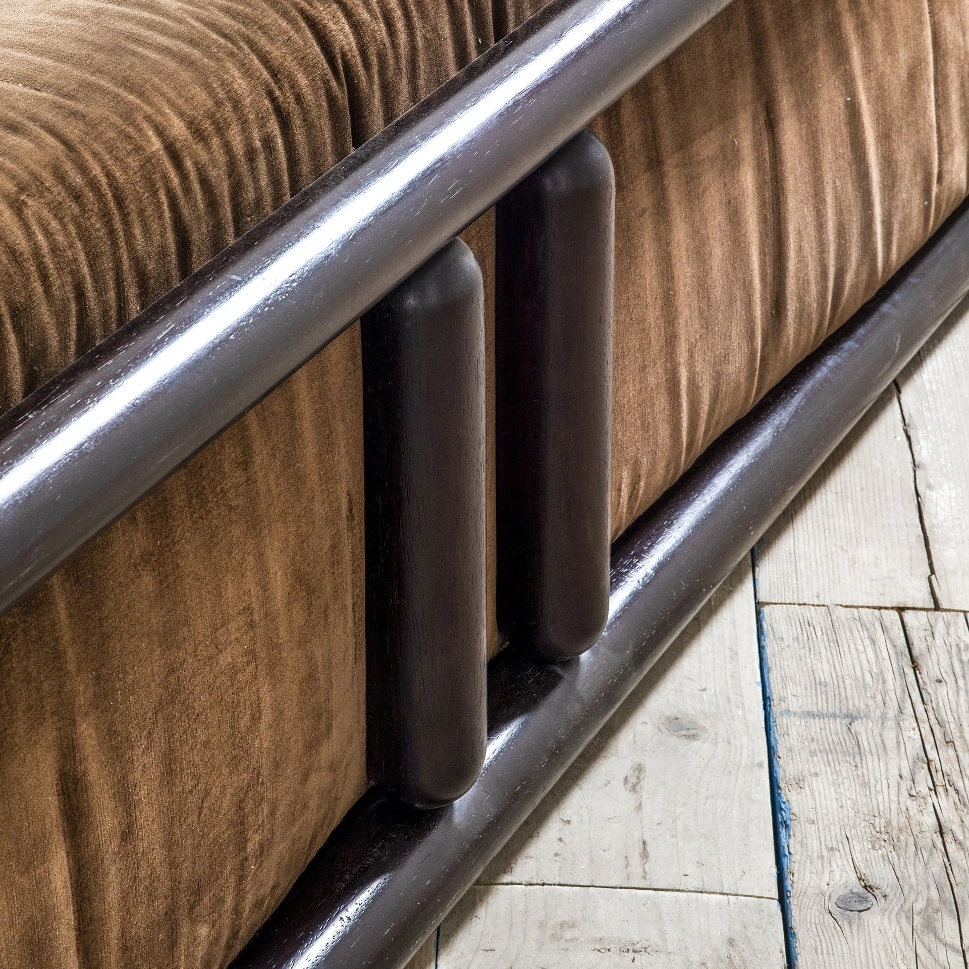 Divano modello Cornaro di Carlo Scarpa per Simon Gavina con struttura in legno e cuscini rivestiti con tessuto originale, anni ’70