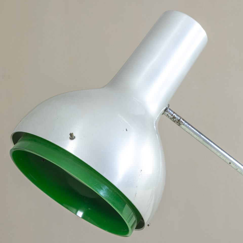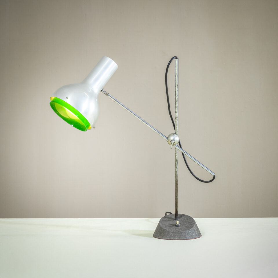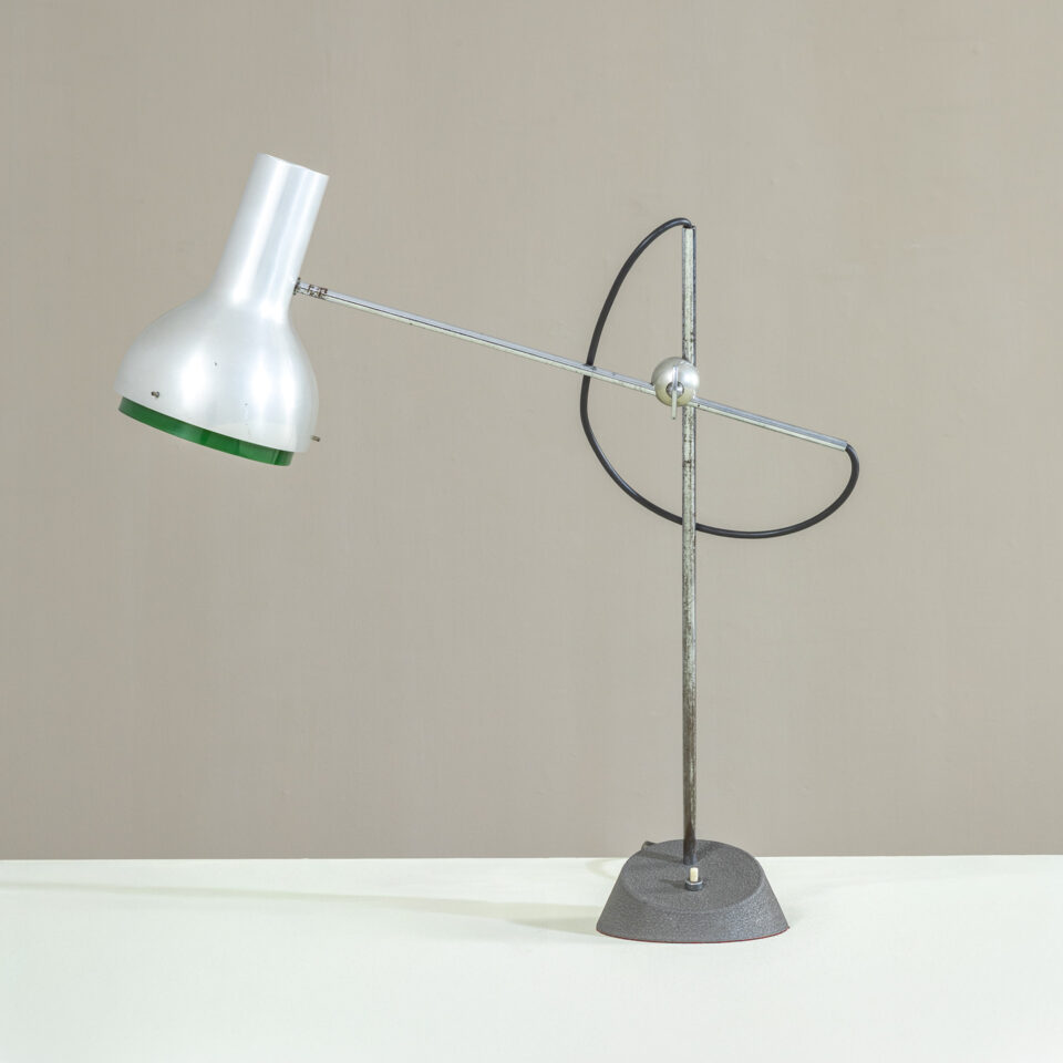 Lampada da tavolo mod. 573, struttura in metallo e alluminio, disegnata da Gino Sarfatti per Arteluce