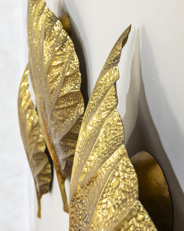 Set di tre applique a forma di foglia, struttura in ottone, disegnate da Tommaso Barbi per Bottega Gadda