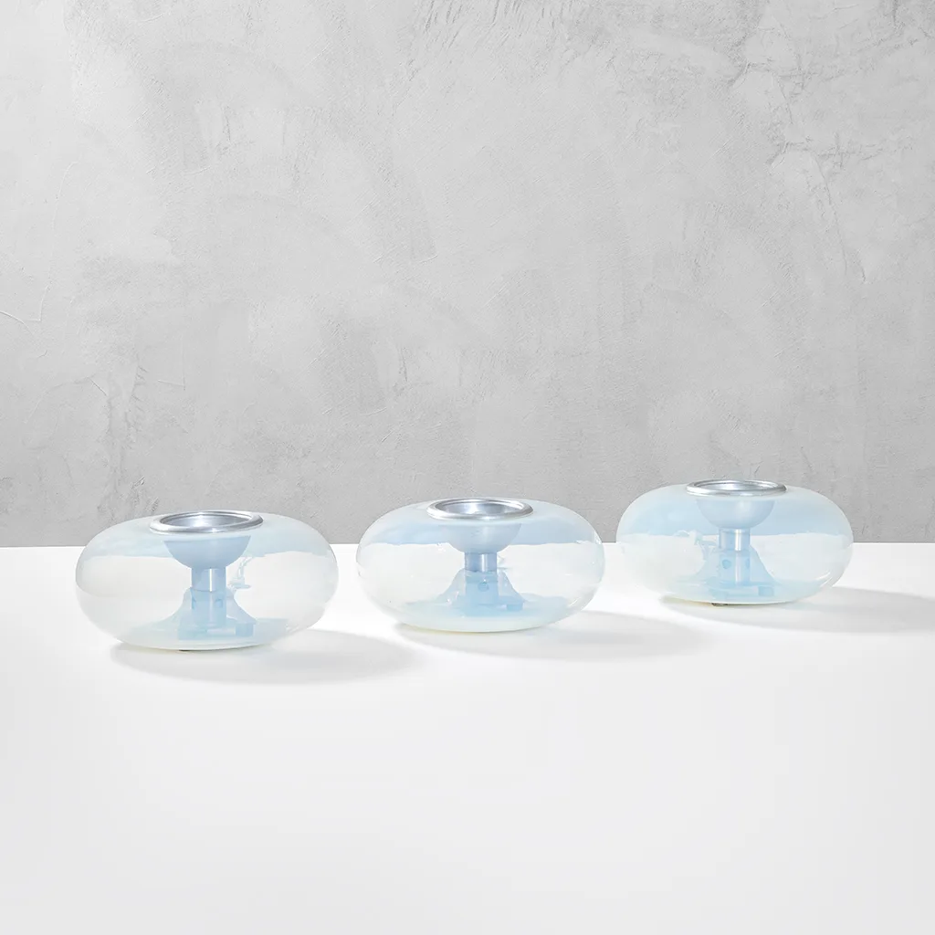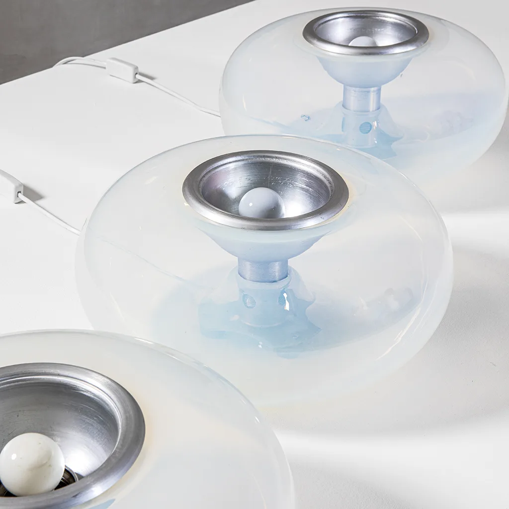 Set di tre lampade da tavolo Leucos a forma di ciambella in Vetro di Murano azzurro, anni ‘70